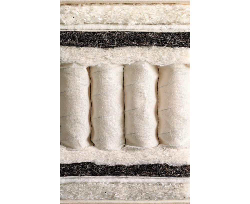Верхний слой наполнителя состоит из смеси шерсти ягнят, белого хлопка и конского волоса.