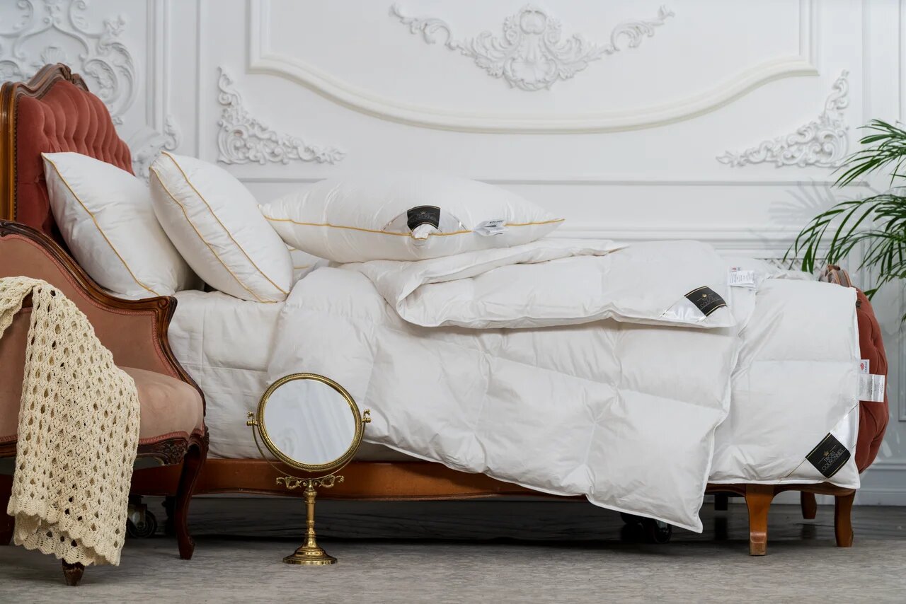 Наполнитель: 100% новый чистый белый̆ мазурский̆ гусиный̆ пух, 1 класс, CUIN 650, сертификат RDS (честный пух).