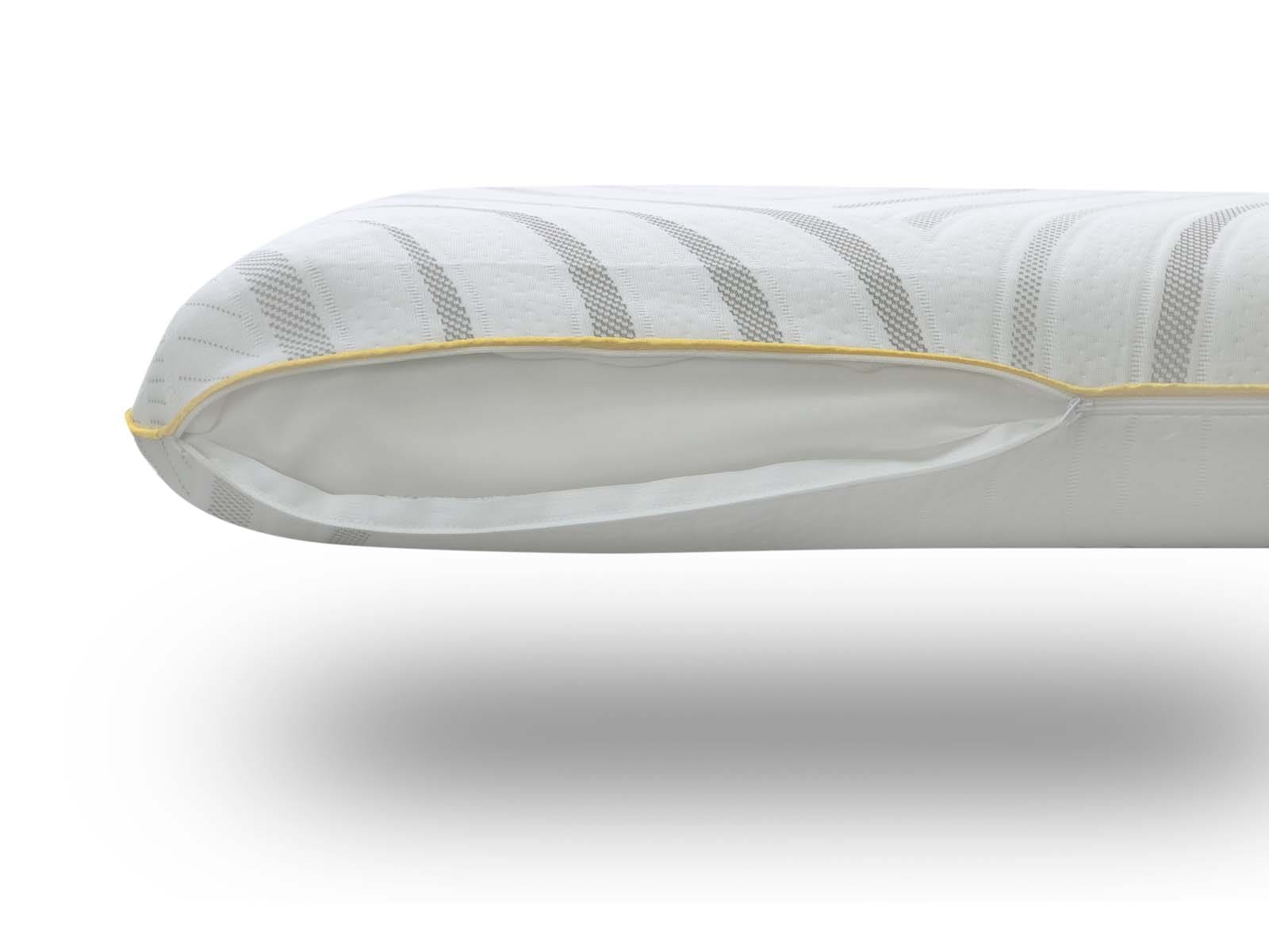 У подушки двойной чехол - внешний чехол съемный с удобной длинной молнией по всей длине (можно снимать и стирать при температуре до 60С) и внутренний воздухопроницаемый 3d.  Именно благодаря уникальным чехлам подушка сохраняет и передает все ощущения от внутреннего материала.
