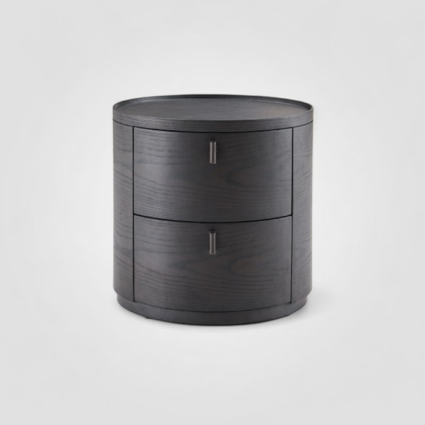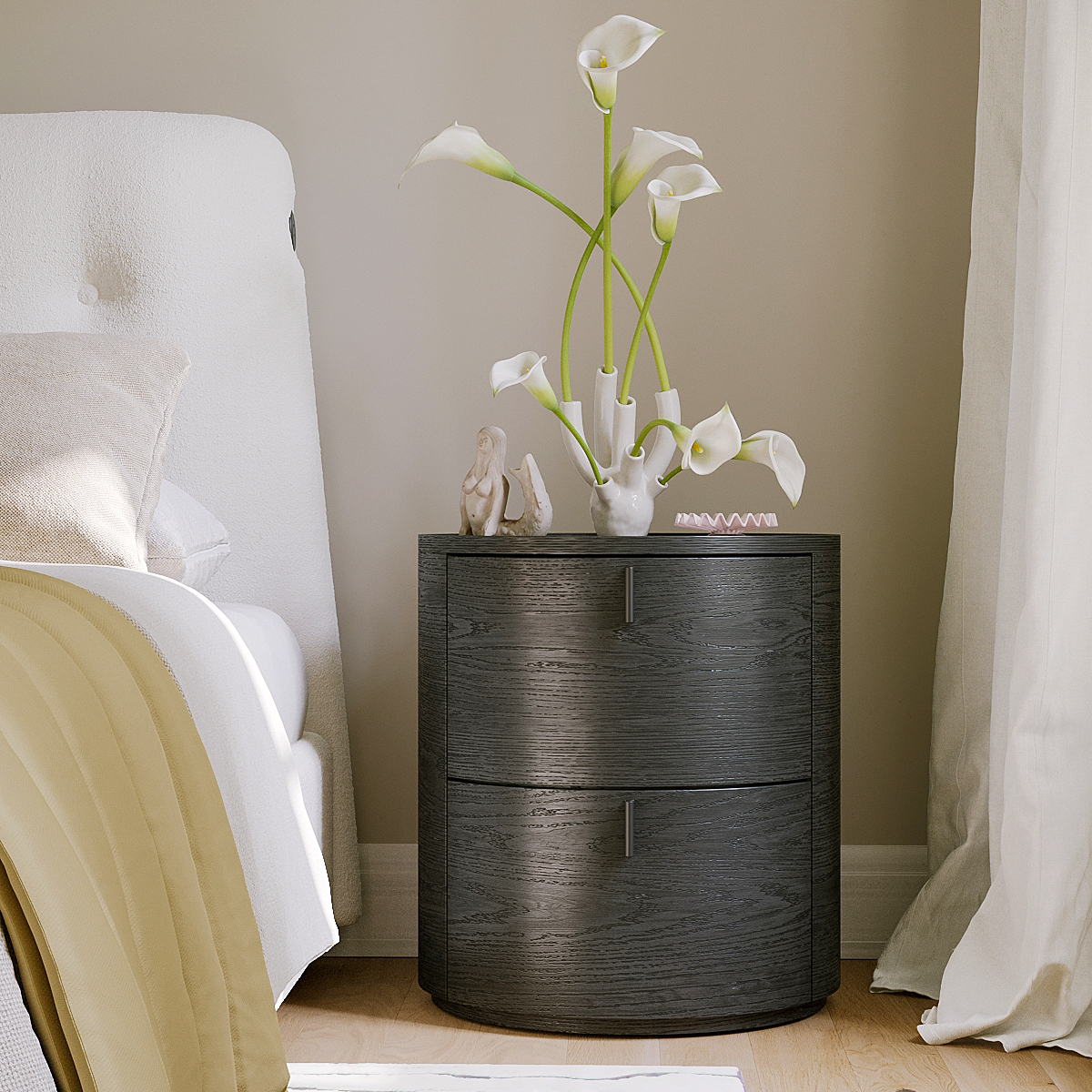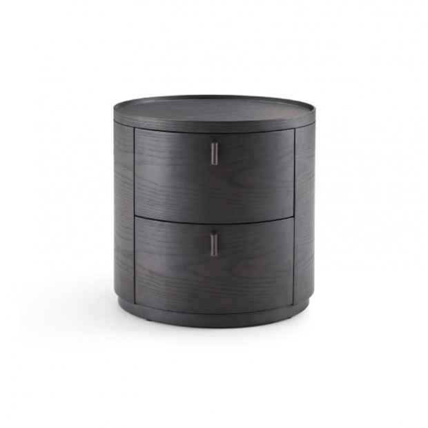 Прикроватная круглая тумба SOUR в черном цвете из МДФ и шпона вяза. Благодаря сочетанию материалов дерево легко поддается обработке, позволяя создавать идеально ровные и гладкие скругления. Тонкий срез натурального дерева сохраняет уникальную текстуру и рисунок, придавая тумбе благородный вид.