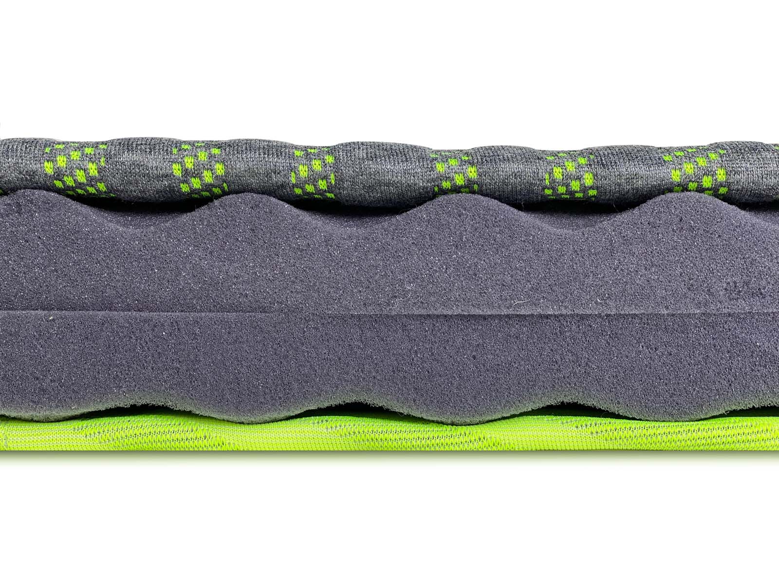 Слои как пазл собираются вместе - поэтому в матрасе не используется клей.  При желании их можно переворачивать, разъединить, развернуть контурной стороной наверх либо вниз, получая разные эффекты адаптации и жесткости поверхности.