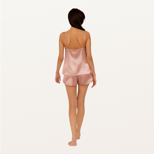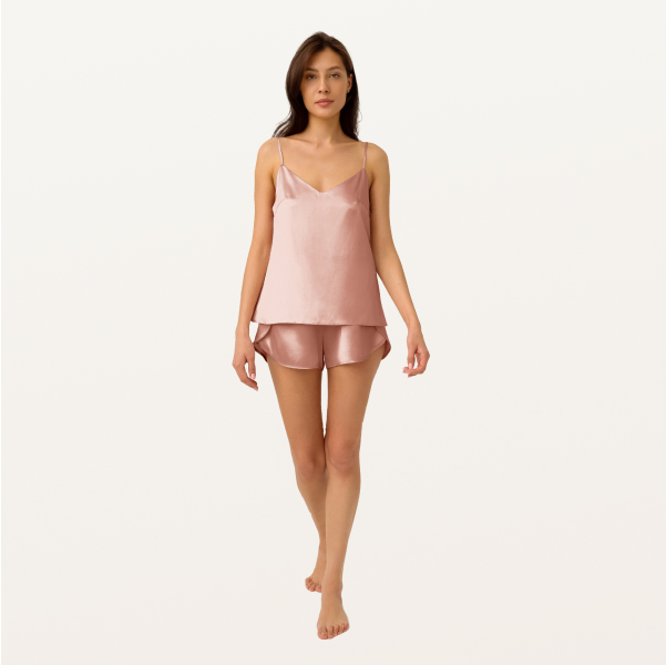 Топ классического кроя с V-образным вырезом из 100% натурального органик-шелка деликатно прилегает к телу. Свободная посадка и регулируемые бретели дарят ощущение максимального комфорта, а натуральный шелк позволяет коже дышать.
