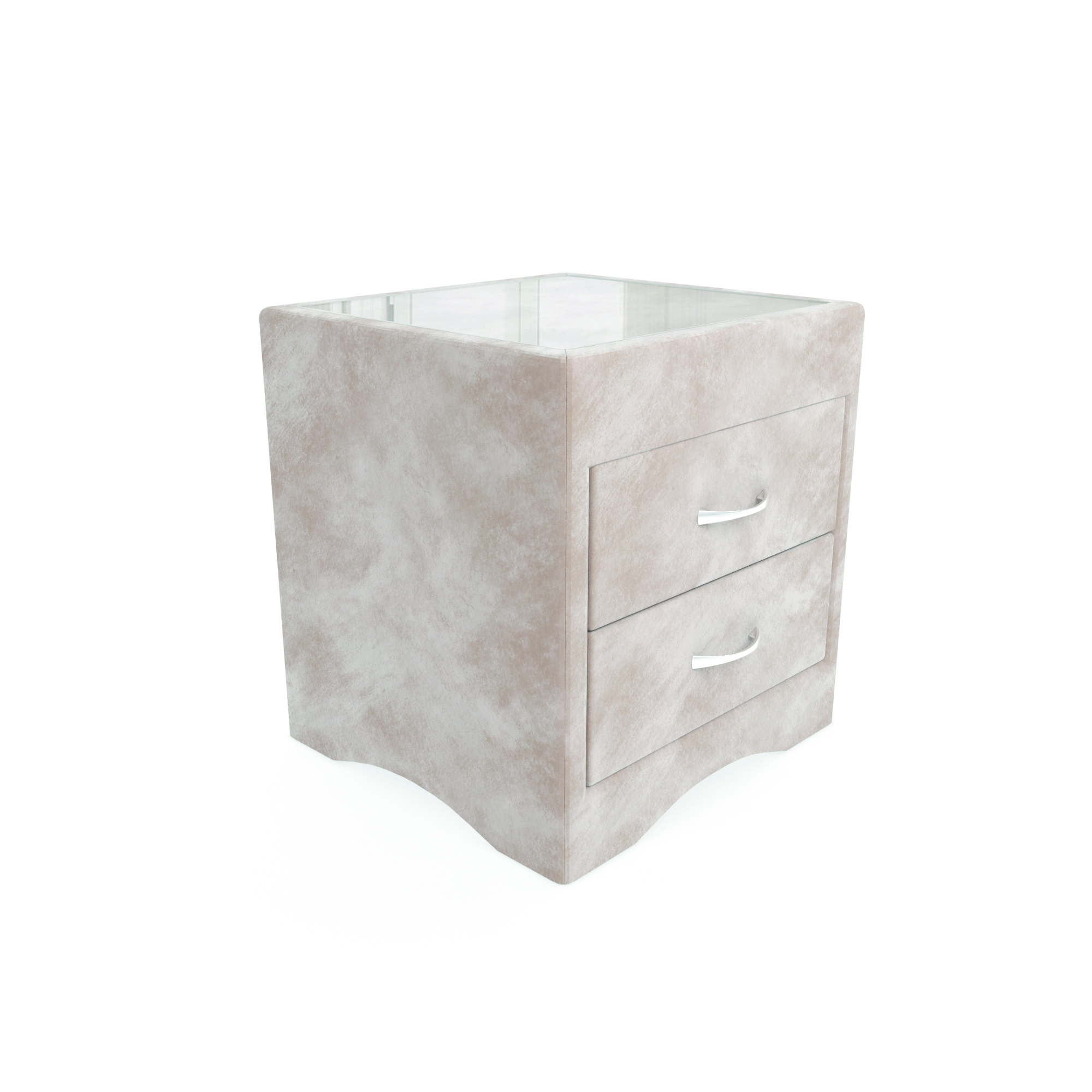 Интерьерная прикроватная тумба в мебельных тканях на заказ.