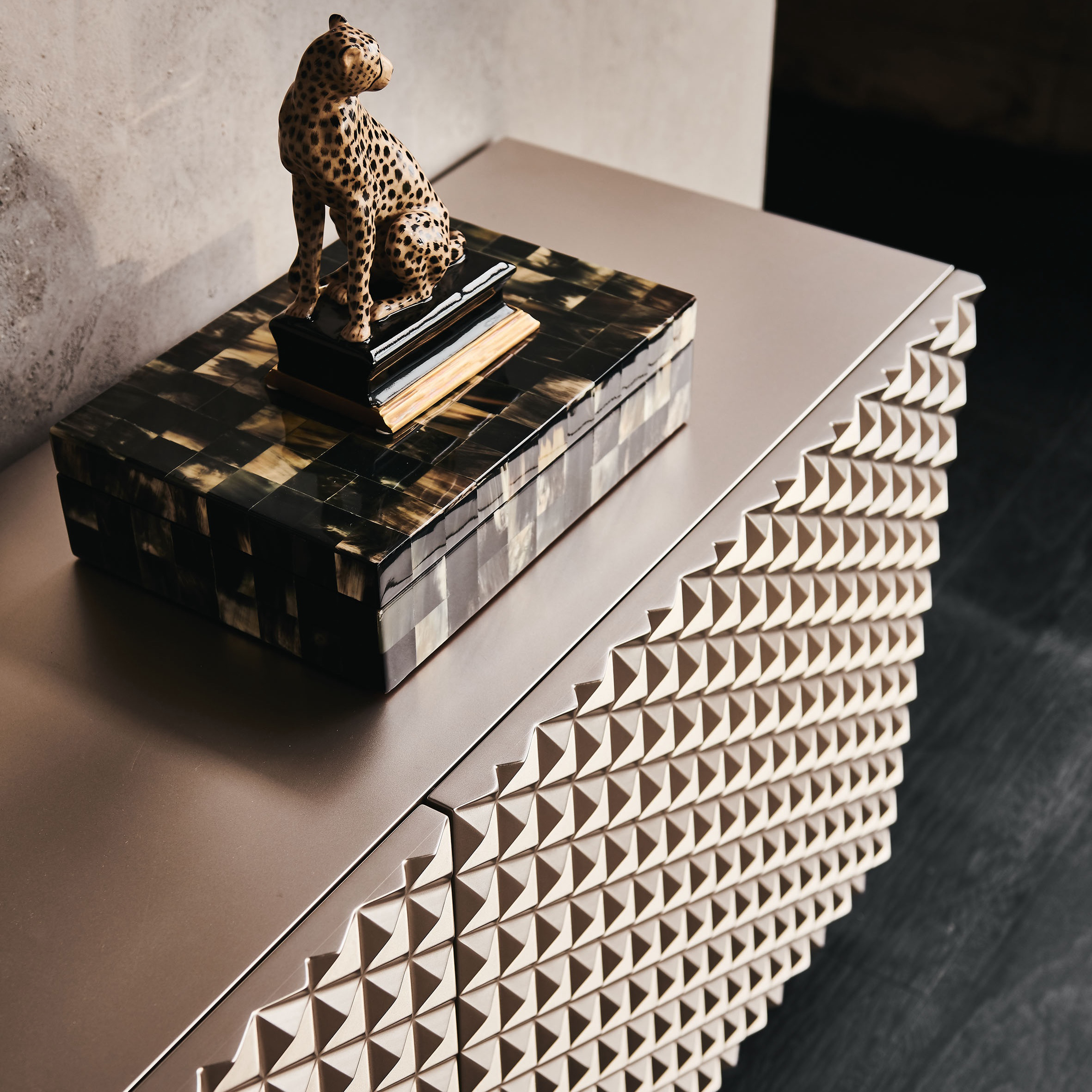 Комод VILLON в оригинальном корпусе и акцентном цвете.Особенности модели:- Глубокий золотой оттенок с элементами синего, переливом в охру и темными отблесками;- функциональный комод с широкой столешницей и двумя глубокими ящиками. В них можно хранить все необходимое, вплоть до объемных вещей;- комод можно использовать в качестве ТВ-тумбы: крепкий корпус выдержит вес большого телевизора;- тонкие металлические ножки. Создают эффект парения массивной конструкции над полом.