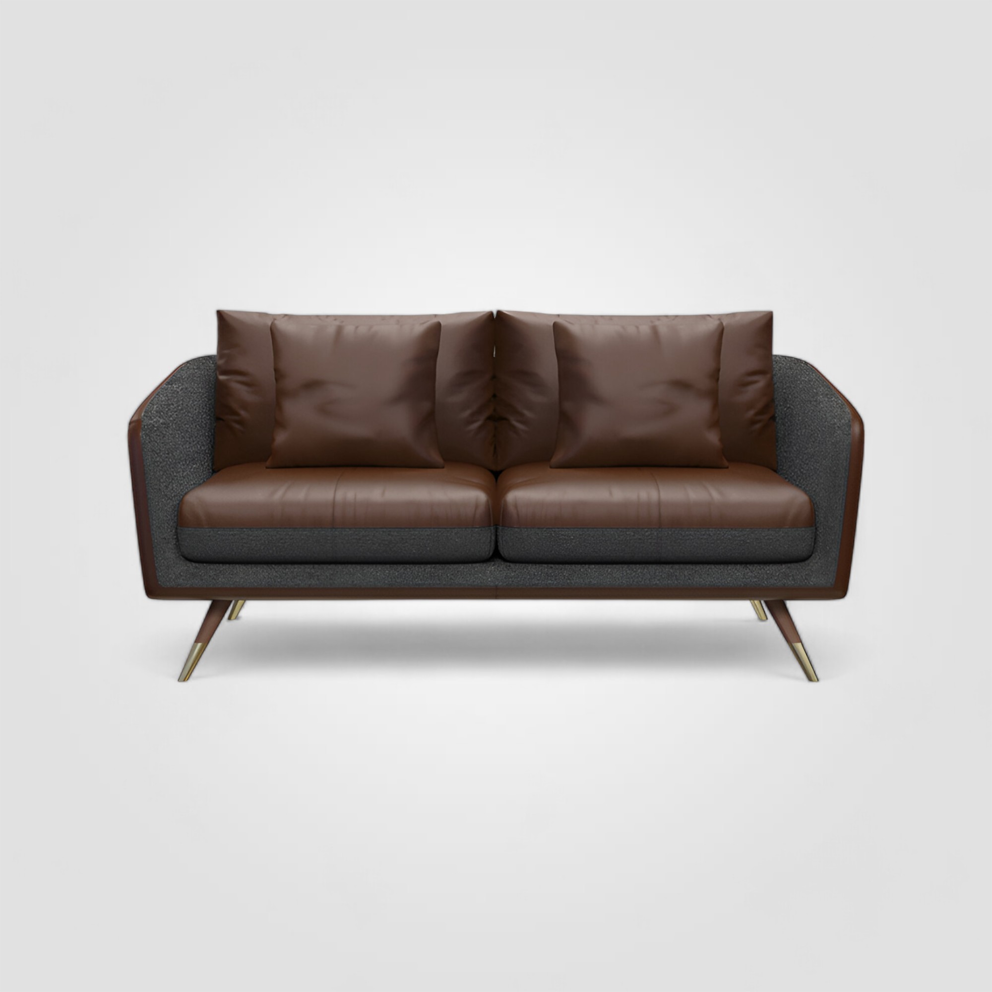 Элегантный дизайнерский диван для гостиной VOLTA от бренда Commune – идеальное сочетание стиля и комфорта. Изготовлен из высококачественных материалов: натуральная кожа, ткань, дерево и металл. Ножки выполнены из массива дерева и металла и обеспечивают надежную поддержку и эстетичный вид. Цветовая гамма представлена в оттенках коричневого, серого, ореха и латуни, что добавляет изысканности и роскоши интерьеру. Двусторонние подушки – из натуральной кожи коричневого цвета и ткани серого оттенка. Диван предназначен для 2-3 человек, идеально подходит как для проведения вечеров в уютной обстановке, так и для принятия гостей. Отлично подойдет для офисов и рабочих домашних кабинетов.