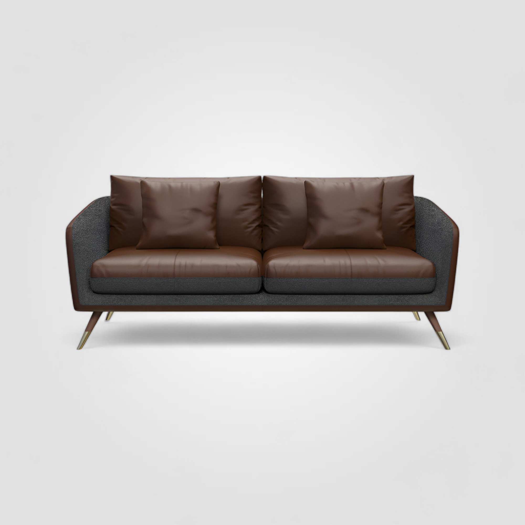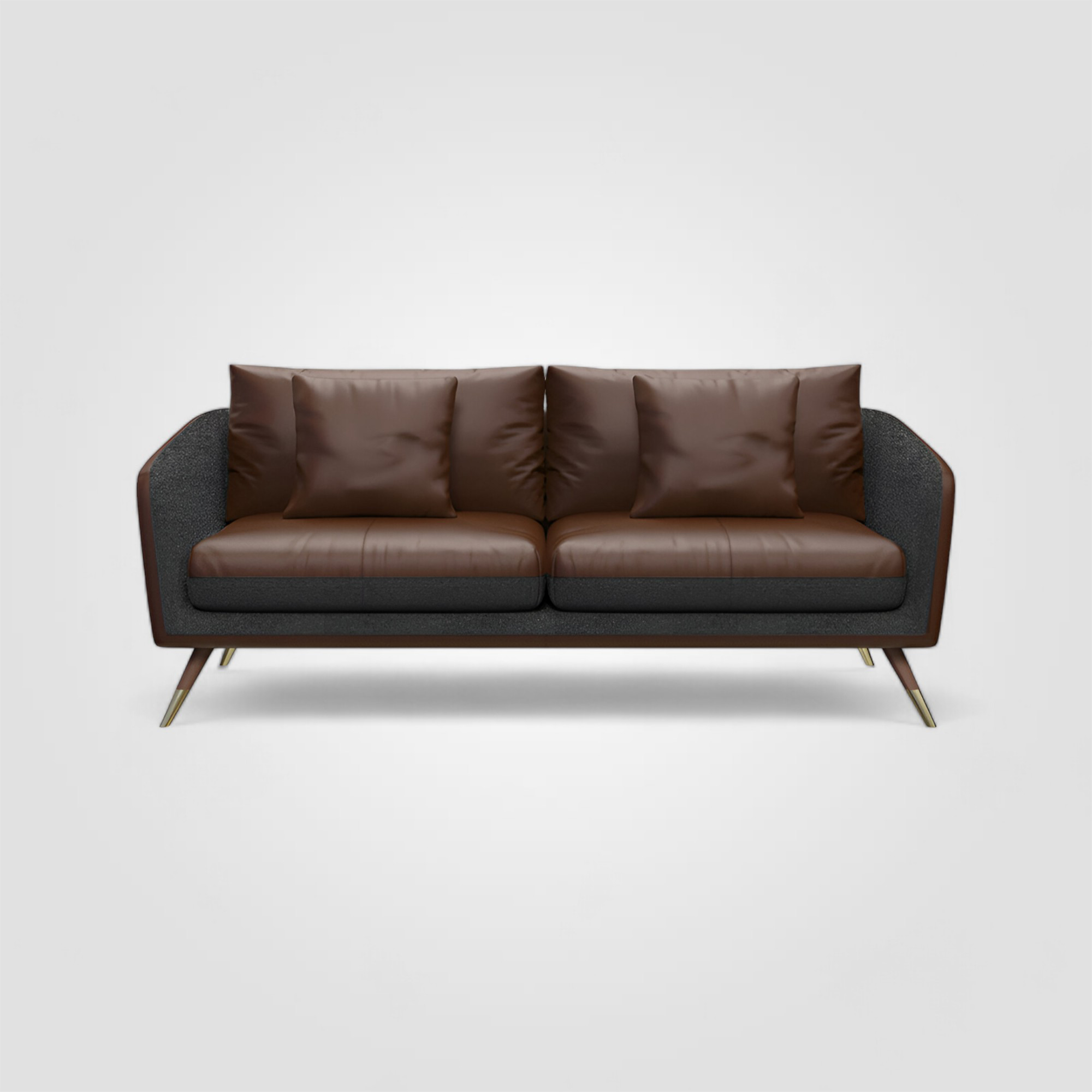 Элегантный дизайнерский диван для гостиной VOLTA от бренда Commune – идеальное сочетание стиля и комфорта. Изготовлен из высококачественных материалов: натуральная кожа, ткань, дерево и металл. Ножки выполнены из массива дерева и металла и обеспечивают надежную поддержку и эстетичный вид. Цветовая гамма представлена в оттенках коричневого, серого, ореха и латуни, что добавляет изысканности и роскоши интерьеру. Двусторонние подушки – из натуральной кожи коричневого цвета и ткани серого оттенка. Диван предназначен для 2-3 человек, идеально подходит как для проведения вечеров в уютной обстановке, так и для принятия гостей. Отлично подойдет для офисов и рабочих домашних кабинетов.