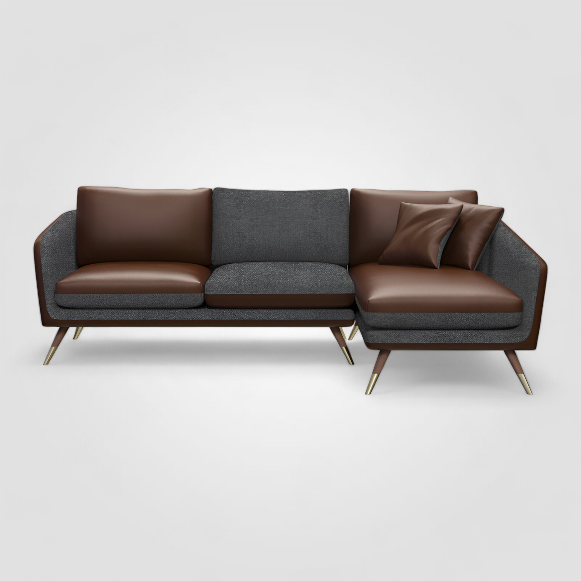 Элегантный дизайнерский диван для гостиной VOLTA от бренда Commune – идеальное сочетание стиля и комфорта. Изготовлен из высококачественных материалов: натуральная кожа, ткань, дерево и металл. Ножки выполнены из массива дерева и металла и обеспечивают надежную поддержку и эстетичный вид. Цветовая гамма представлена в оттенках коричневого, серого, ореха и латуни, что добавляет изысканности и роскоши интерьеру. Двусторонние подушки – из натуральной кожи коричневого цвета и ткани серого оттенка. Диван предназначен для больших компаний, идеально подходит как для проведения вечеров в уютной обстановке, так и для принятия гостей. Отлично подойдет для офисов и рабочих домашних кабинетов.